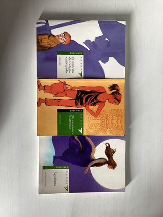Tres libros de lectura infantil y juvenil para niños o jóvenes. Precio por el pack. En buen estado, un canto un poco estropeado, se ve en las fotos. Por lo demás, bien. Entrega en mano.