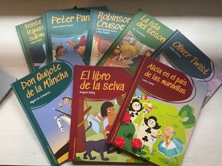 Pack de 8 libros de la serie 'Mi primera biblioteca'. Son versiones infantiles de clásicos de la literatura, con ilustraciones y resumidos. Los títulso que tengo: - Peter Pan - Alicia en el País de las Maravillas - Don Quijote de la Mancha - Oliver Twist - El libro de la selva - La isla del tesoro - 20.000 leguas en viaje submarino - Robinson Crusoe