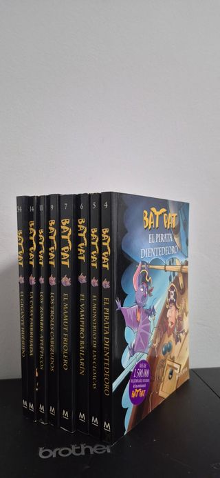 Vendo pack de 8 libros de Bat Pat. Incluye títulos como El pirata Dientedeoro, El gigante huesudo y La casa embrujada (ver fotos). Muy buen estado general, interiores perfectos y solo leves roces en bordes por almacenamiento. Lectura ideal para niños. Vendo el lote completo preferencialmente a 48 € y cada libro suelto 8 €