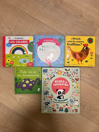 5 libros infantiles en muy bien estado: - Los colores - Este no es mi dinosaurio (Usborne) - Primeras palabras (con fieltro) - Busca y Encuetra para los mas pequeños. Los animales (Auzou) - Donde está la señora gallina? (Timunmas) Por los 5 libros 20€