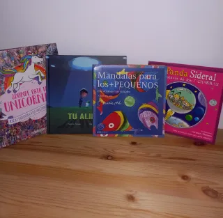 Vendo lote completo de 4 libros infantiles, ideales para fomentar la lectura, la creatividad y la imaginación. Libros ilustrados, coloridos y bien cuidados. Incluye: ¿Dónde está el unicornio? – libro de búsqueda y observación Tú Alien – álbum ilustrado con una historia tierna y visual Mandalas para los más pequeños – actividades creativas y relajantes Panda Sideral y la galaxia de los 7 chakras – cuento ilustrado con mandalas para colorear Estado: muy bueno, sin roturas ni páginas pintadas. Edad recomendada: a partir de 3–4 años (según libro). Se venden juntos.