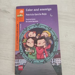 Libro de lectura, del colegio. Está muy bien cuidado, forrado pero pone nombre (quitaríamos el forro y el nombre está en una pegatina). Todas las actividades están hechas, lápiz o coloreadas. Usado sólo por una niña.
