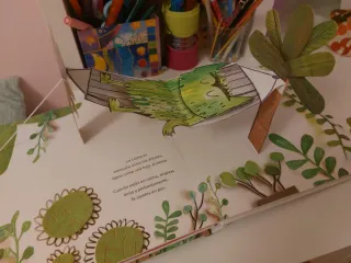 precioso cuento sobre las emociones no es pop Up es el formato normal está en muy buen estado aunque como se puede ver en la foto del libro abierto lo hemos leído mucho y del paso de la hojas a la mitad del cuento se nota un poco más abierto pero no está roto.