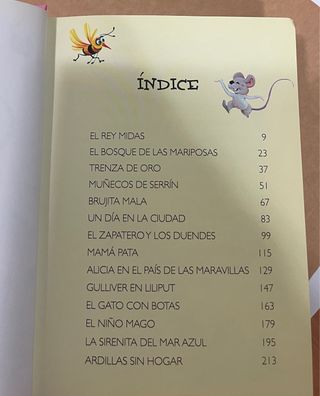 Cuentos maravillosos para compartir la magia que nos hizo soñar en nuestra infancia. Con pestañas para más fácil acceso a los cuentos. Sin dobleces ni escrituras en los libros. Ilustraciones de la talentosa Mercedes Palacios.