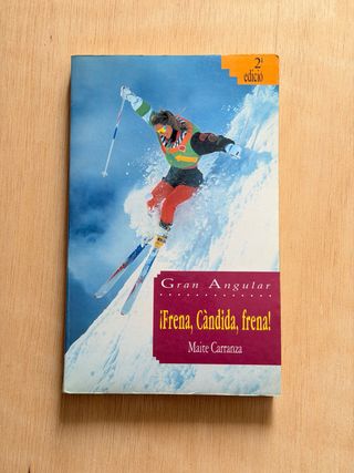 Libro Frena, Càndida, frena! de Maite Carranza, una de las novelas juveniles más conocidas de la colección Gran Angular de editorial Cruïlla. Lectura habitual en institutos y muy valorada por su estilo cercano, divertido y fácil de leer. Edición en catalán. La historia sigue a Cándida, una chica que empieza a enfrentarse a los cambios de la adolescencia, las relaciones y la búsqueda de su identidad, con situaciones cotidianas tratadas con humor e inteligencia. Libro entretenido, ideal para jóvenes lectores o para quien quiera recuperar lecturas escolares míticas.