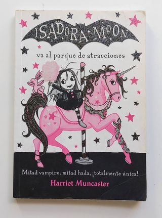 <<Isadora Moon va al parque de atracciones>> n° 7. Harriet Muncaster. Isadora Moon es especial. Su mamá es un hada y su papá un vampiro; y ella tiene un poquito de los dos. Isadora Moon está emocionada por ir al parque de atracciones, pero cuando llega se da cuenta de que no es tan mágico como esperaba... Con irresistibles ilustraciones en negro y rosa y una heroína única, "Isadora Moon" es una encantadora y divertida serie de aventuras ideal para lectores a partir de 7 años. Texto sencillo y entretenido, fácil de leer y de entender.
