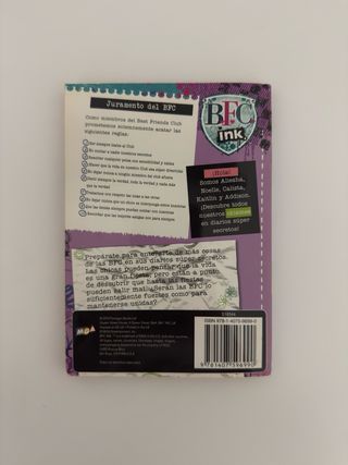 Libro juvenil de tapa blanca titulado “BFC ink; Fiestas, pijamas y pequeños misterios. Editorial Parragon. Lanzo en 2010.