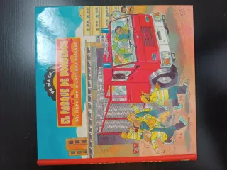 Libro infantil de tapa dura sobre los bomberos con solapas desplegables.