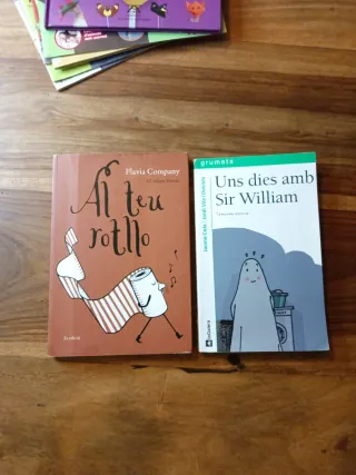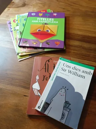 varios títulos de la colección "El mundo de Rita" de Mikel Valverde, como La Rita al Pol y La Rita té xicot. Otros libros visibles son: Fantasmátic de Estrella Ramon. Un fantasma fet a mida de Christine Nöstlinger. Caballero o caballera, lo sabrás a la primera de Enric Lluch. ¡No es tan fácil ser niño! de Pilar Lozano Carballo. Jon y la máquina del miedo de Roberto Santiago. Geronimo Stilton: El lladre de llibres de Helena Tornero. Ui, quina por! de Ricardo Alcántara.