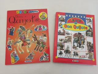 Libro infantil Historias de Don Quijote, que se entrega junto con un libro para pegar pegatinas y colorear también de Don Quijote. Ambos libros sin utilizar, a estrenar. Puedes buscar más libros en mi perfil. Libros infantiles. Don Quijote. Regalo.