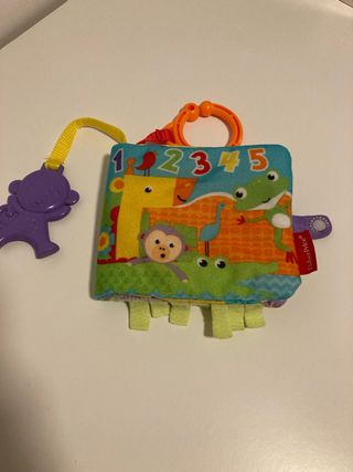 Es un libro de tacto aterciopelado y suave donde los niños y niñas pueden jugar con el zorrito, tiene diferentes escenarios, la cocina, el baño y la habitacion y en cada uno de ellos hay elementos con velcro parabpoder jugar y practicar la motricidad fina.