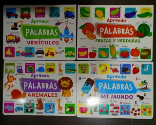 Colección completa de libros infantiles "aprendo palabras" - Mi mundo - Anímales - Frutas y verduras - Vehículos Con ilustraciones grandes y atractivas. Paginas gruesas de cartón para que pueda manejar el niñ@ por si mismo.