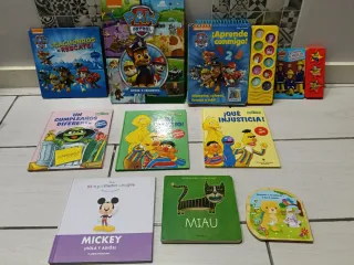 2 libros músicales , patrulla canina y bomberos y otros mas
