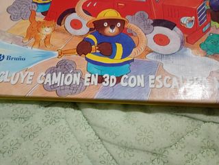 Es un libro para jugar con figuras en 3D, incluye un camión con escalera móvil en 3D...De dimensión 37'5 de largo y 29 cm. de ancho