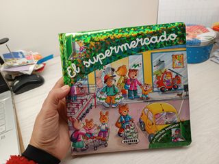 Libro muy bonito y didáctico con pestañas desplegables. Ideal para trabajar vocabulario del centro de interés "los alimentos" que podemos comprar en un supermercado.