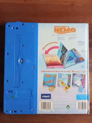 Libro interactivo Buscando a Nemo de Disney, con pilas incluidas, en perfecto funcionamiento como se ve en la fotografías. Tamaño grande de 30 x 27 cm. Interruptor lateral de encendido y apagado. Audio en español con actividades Algunas marcas de desgaste en la portada y en la última pág.