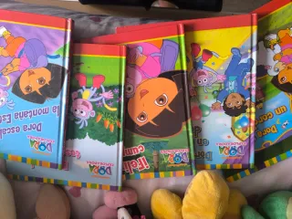 Pack de cinco libros de Dora la exploradora en perfecto estado títulos: Dora y el tesoro antiguo; Dora escala la montaña estrella; Feliz cumpleaños; Dora y botas en la fiesta de Daisy; Dora tenía un corderito.