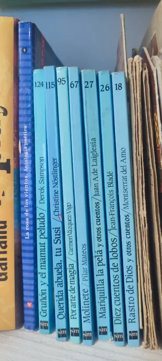 Libros que se incluyen: -El mensaje de los pájaros -Adaptación de Don Quijote de la Mancha -Fray Perico y su borrico -Maíto Panduro -La Sonámbula en la Ciudad-Laberinto -Cuando Hitler robó el conejo rosa -Segismundo y compañía -El mago del paso subterráneo