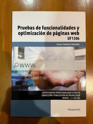 Libro de Pruebas de funcionalidades y optimización de páginas web, UF1306 de Carlos Caballero González. ISBN: 978-84-283-9692-9