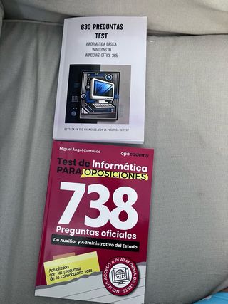 tests temario informatica auxiliar admin c2 oposiciones escribir antes. 5 eu por tema. o 10 eu todo. es temario auxiliar admin jccm c2 2023 , un libro tests informatics, otro libro simulacros de aux admin completo. mas tests de aux admin y informatica. escribir antes.