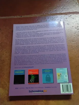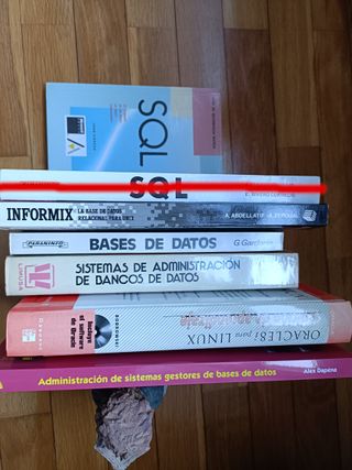 Distintas áreas: Bases de datos / SQL Redes: conceptos, TCP/IP, ... Deseño e programación sobre redes e Linux Sistemas operativos / Linux Programación / C, C++, ... Enxeñaría do software, CASE, ... Seguridade informática Varios: XML, GIMP, Samba, ... Revistas: monografías sobre temas variados. Lote de 6 libros 25€, 12 libros 50€, libros sueltos 5€, todos a 3€ cada uno + regalo revistas