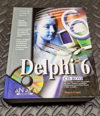 Libro de programación en Delphi 6. Tapa dura. Contiene el CDROM original. Tan sólo tiene algo de polvo de la estantería. Anaya Multimedia - Marco Cantú. 1104 páginas. ISBN10: 84-415-1302-3