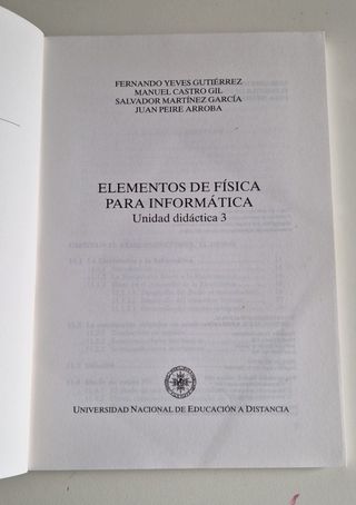 Elementos de física para informática - Unidad didáctica 3. Editorial UNED. 170 páginas. ISBN: 84-362-2932-0 Está en buen estado, sólo algo de polvo en el borde superior por estar en la estantería.