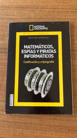 Libro de edición especial de National Geographic: "Matemáticas, espías y piratas informáticos. Codificación y criptografía" Autor: Joan-Vicenç Gómez Urgellés Una joya para los apasionados de la historia, las matemáticas, el espionaje y la seguridad informática. Explora desde códigos secretos en guerras hasta algoritmos modernos y hackers. Edición cuidada, ilustrada, tapa blanda Ideal como regalo o para añadir a tu colección de libros científicos/divulgativos.