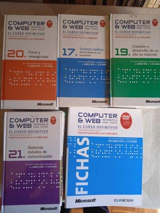 Colección 'Computer y web, Informática para todos' - Diario El Mundo. Compuesta de un folleto de presentación de la obra de 16 páginas, 1 fichero, 30 libros, 30 dvs y 60 cdroms. (Unidad Editorial, Madrid, 2008). ISBN: 978-84-92540-33-4. DL: Z-2804-2008. español. color. Medidas fichero abierto: 31,5x54x4,5 cms. Faltan 4 fichas de las 72 originales. 30 libros (colección completa) Medidas de cada libro: 26,5x15x2 cms. 26 precintados y 4 sin envoltorio. Cada libro contiene 1 dvd y 2 cdroms (colección completa). Precio original de todos los fascículos: 390€. Colección innovadora y exhaustiva en su época. Para amantes de la informática.