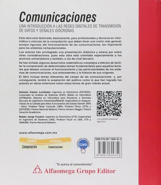 "Comunicaciones: Una introducción a las redes digitales de transmisión de datos y señales isócronas". Autores: Rubén Jorge Fusario y Antonio R. Castro Lechtaler. Editorial: Alfaomega Grupo Editor. Temas: Ingeniería, telecomunicaciones, comunicaciones digitales y transmisión de datos. La obra está orientada a profesionales y técnicos en informática o ciencias de la computación que necesiten una visión rigurosa del funcionamiento de las comunicaciones, abarcando conceptos básicos, transmisión de señales y redes.