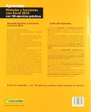 LIBRO NUEVO EMPAQUE ORIGINAL Con este manual a color aprenderá a: Crear diferentes tipos de referencias y nombres de celdas y rangos. Representar sus datos en tablas de datos, tablas dinámicas, matrices, toda clase de gráficos, minigráficos y formatos condicionales. Trabajar con las avanzadas herramientas de datos de Excel 2010 que permiten, por ejemplo, ubicar y corregir errores de planteamiento, así como crear criterios de validación.