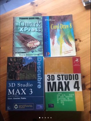 Libros en perfecto estado completos. - 3D studio max 4. Año 2002. - 3D studio Max 3. Año 2000. - Corel draw 8. Año 1998. - Quark xpress. Año 2002. Precio del lote con Posibilidad de comprar sueltos. Mas articulos en mi perfil!! Hago envios o recoges en Dos Hermanas. C14 libros lote informatica barato cultura ordenadores regalo aprender pc coleccionismo guias ejercicios archivos gratis web documentos
