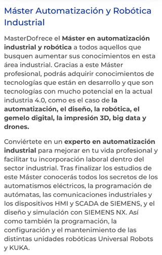 Temario del Master en automatización y robótica