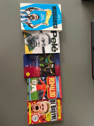 Libros de Fútbol de Messi, Neymar, Cristiano, Pelé y De Bruyne. Inglés: Pelé, Cristiano y De Bruyne Español: Messi y Neymar