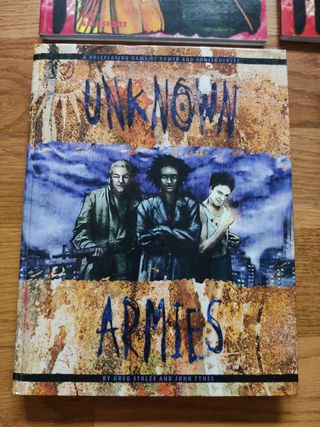 Colección de libros básicos más módulos de la primera edición de unkown armies, el juego de rol, libros en español e inglés. Muy bien cuidados. Edge, nosolorol, d&d, vampiro, juegos de mesa