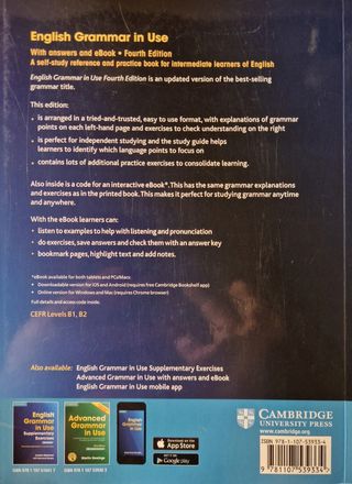 Libro de ejercicios en ingles por temas con respuestas. Está la mayoría del libro en blanco, sin hacer. Alguna cosas hechas a lápiz. En buen estado, pero con uso. Lo compré por 40€, está en buena estado y muy bueno para la gramática. Viene con código para hacer ejercicios a través de una app.