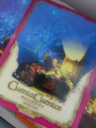 Colección de 9 cuentos clásicos bilingües español-ingles, con CDs también bilingües (faltan 4 CDs). En la foto principal se ven los libros que tienen CD. Las últimas páginas de cada uno de los libros son de actividades. Han tenido poco uso.