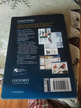 Diccionario Oxford Pocket Español Inglés, tapa blanda, no contiene el Cd, se puede recoger en mano, si tienes alguna duda mándame un mensaje.