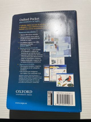 Diccionario Oxford Pocket para estudiantes de inglés. Español-inglés, inglés-español. Cuarta edición completamente actualizada. ISBN: 9780194419277.