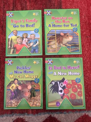 Libros en inglés para que los niños puedan empezar a leer en inglés Project X editorial Oxford Hamster on the run and a home for ted Tiger’s family and go to the bed ! Pickles’ new home and my cat moggy Is dad in here ? And a new home Let’s get reading ( Handbook ) The race and ant’s bug adventure Libros nuevos a estrenar 2 stories in 1 Todos por 10€