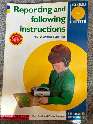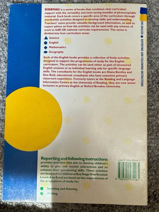 Vendo este libro educativo en inglés con actividades fotocopiables para niños de Key Stage 1 / Niveles A-B en Escocia. Es perfecto para trabajar la comprensión oral, la expresión escrita y el seguimiento de instrucciones de forma divertida. ✔️ Incluye juegos como "Diseña un monstruo" o "Diseña un robot", ideales para actividades en pareja o grupo. ✔️ Recomendado para edades entre 5 y 7 años. ✔️ Revisión conforme al currículum nacional del Reino Unido de 1995. ✔️ En buen estado, ideal para usar en casa o en el aula.