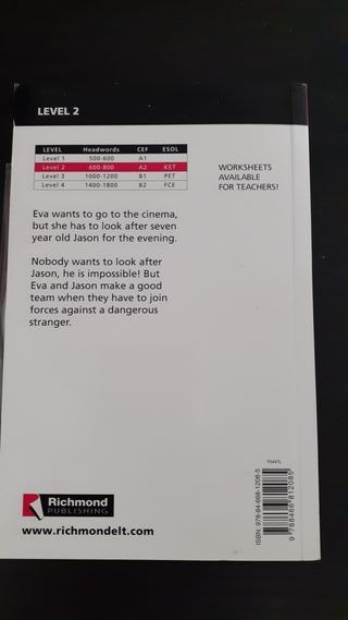 4 libros de la colección Richmond Readers en inglés, nuevos. Dos del nivel Younger Starter y dos de Level 1. Contienen actividades de refuerzo en forma de jueos como sopas de letras para fijar el vocabulario de la historia. Ideal para regalo. 1 libro 4€, los 4 libros por 14€ - A Ghost Story (ISBN 84-668-0252-5) - Zazar and the sun (ISBN 84-668-0459-5) - The vampire (ISBN 84-668-0472-2) - The haunted Castle (84-668-0449-8) Consulta más libros infantiles y juveniles para aprender inglés en mi perfil. Pueden hacerse packs de envío.
