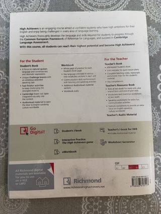 High Achievers Workbook, RICHMOND. Nivel A2+ (desde 6º de primaria a 1ºESO) algunos ejercicios están hechos a lápiz.