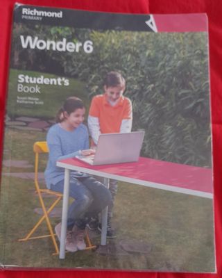 Wonder 6 Student book, libro de inglés para 6° de primaria, en perfecto estado (observa las fotos de las esquinas). ISBN 978-84-668-1799-8. Editorial Richmond Wonders. Regalo Wonder 6 Activity book, parcialmente escrito pero bastante bien conservado.