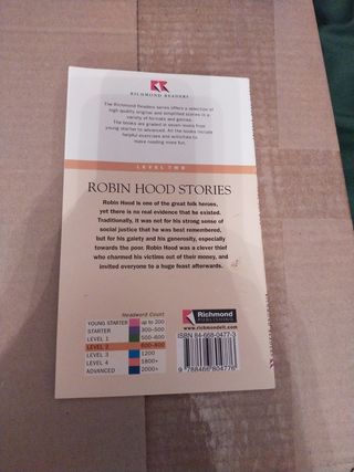 Libro de texto de inglés "Robin Hood Stories" de la editorial Richmond Readers Level 2 con ISBN 9788466804776.