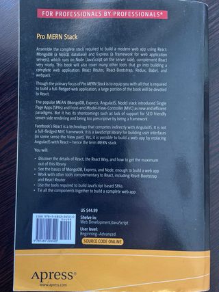 Libro técnico de especialización para montar una web app con el stack MERN (MongoDB, Express, React, Node). En lengua inglesa. No hago envíos.