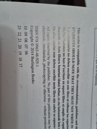 Libro inglés lo acabo de comprar de segunda mano por 15 eur pero tiene algunos ejercicios hechos hay fotos así q si alguien le fa igual y lo quiere barato lo vendo por 5 eur. Esta en muy buen estado lo único lo q tiene pintado.