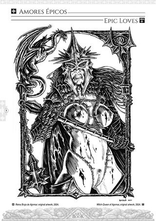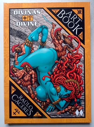 Art Book Divinas / Divine del dibujante Raúlo Cáceres es un nuevo recopilatorio de encargos y portadas de distintas temáticas que van desde la fantasía épica al terror o el super heroísmo, todo ello desde la óptica del erotismo. Con el metal extremo como banda sonora, veremos reinterpretaciones bárbaras, mutaciones del mito artúrico, exploraciones exóticas, homenajes al cine maldito y tributos a Sade. La tinta impera, barroca y dura, pero esta vez también hay lápices, dulces y crueles. Y sobre todo la mujer, divina, a veces diosa, a veces demonio… (Edición bilingüe español-inglés)