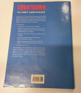 Libro Student's Book Countdown Oxford to first certificate 9780194533522 esta forrado con forro adhesivo, el cual en la portada ha dejado algunas arrugas pq no se ha colocado perfectamente (foto1) con ejercicios resueltos a lápiz
