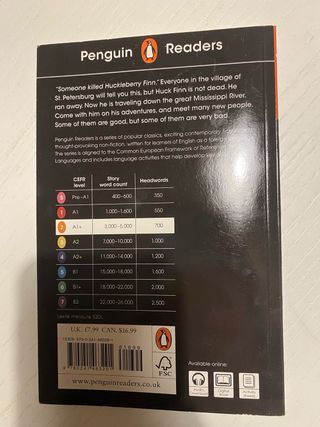 Vendo libro The Adventures of Huckleberry Finn, autor Mark Twin, Editorial Penguin Readers. Ingles. ISBN 9780241463291